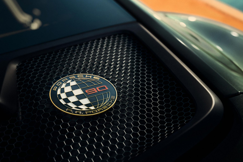 Elle bénéficie également d'une nuance de vert, le Vert Métallisé F.A., inspirée du Vert Chêne métallisé emblématique de la 911 personnelle de F.A. Porsche. Les jantes Sport Classic peintes en noir avec une finition satinées sont également une réalisation qui sera réservée exclusivement à cette édition spéciale. Parmi les autres détails de finition exclusif, on observe, en autres, la fixation centrale et les écussons historiques de 1963 sur les jantes ainsi que la plaque dorée portant le logo "90 F.A. Porsche" sur la grille du capot arrière.